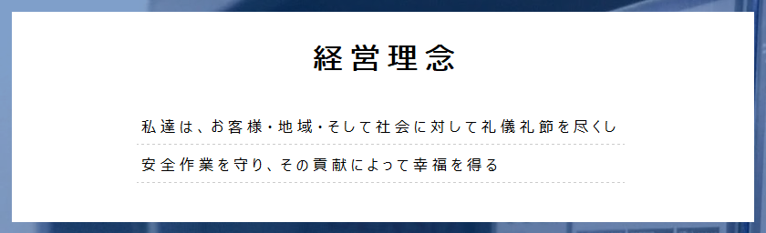 今、私たちが存在しているのは、お客様をはじめ多くの皆様に支えられ現在に至っております。お客様のニーズを的確に把握し、適切に対応するために惜しみない努力を続けるとともに常に感謝する気持ちを堅持し、創業者の想いを忘れることなく高い意欲を持ち続け何事にも挑戦していく優れた専門技術者の育成を志していきます。